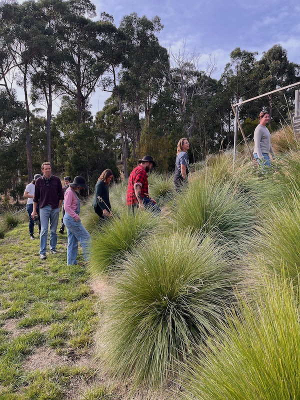 With a full day on Saturday, we had a reduced load on Sunday. We spent the day at our second cohort farm—Lightwood Larder in Glen Huon. Austen and Ash welcomed us to their property, where they’ve been laying the groundwork for their life on the land. Austen and Ash are early in their journey, having started work on the land in December, but you wouldn’t think it with the amount of work completed thus far. We toured their speccy new shed, setup to house offices, wash and pack stations, various pieces of tools and machinery, as well as their music and yoga studios. With their fences up and preliminary nursery tunnel erected, they are working towards pumping out the produce from their 1/2-acre garden this spring. After the walk and talk, we split into our community project groups for a bit of connection and planning. The afternoon was packed with soil as we were joined by the wonderful Belinda Nielsen, Tasmania’s Regional Soils Coordinator for Australia’s National Soil Strategy. We continued our previous month’s LISTmap application and dominant soil order learnings and made great use of Austen’s superb excavator skills to explore soil horizon, texture and classification through a soil pit analysis. We all went our separate ways on Sunday afternoon full of new ideas, inspiration, and direction.